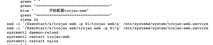 弄一个专门的修改脚本吧,小伙伴们还要东找西找的去找 Jrohy大神 的原版代码安装 Trojan面板 ,干脆集成在一起算了,千万别说作者在盗用别人的脚本,千万不要。